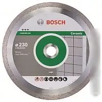 Этот алмазный отрезной диск Bosch предназначен для резки керамики и плитки. Он имеет сплошную конструкцию, что обеспечивает точность и долговечность. Диаметр диска составляет 230 мм, а посадочный диаметр — 22.23 мм, что подходит для большинства электроинструментов. Толщина реза равна 2.4 мм, что позволяет делать аккуратные и чистые срезы. Высота сегмента 10 мм увеличивает эффективность резания. Такой диск легко справляется с твердыми материалами и дает ровные линии реза. Удобство использования достигается за счет хорошей совместимости и прочной конструкции. Он подходит для профессиональных и домашних работ по укладке плитки и керамогранита.