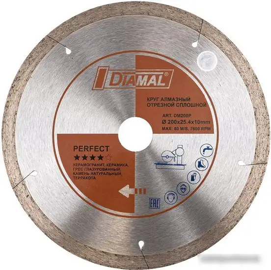 керамогранит/керамика/камень, 1 в наборе, 7600 об/мин, мокрая резка, 200 мм, посадочный диаметр 25.4 мм