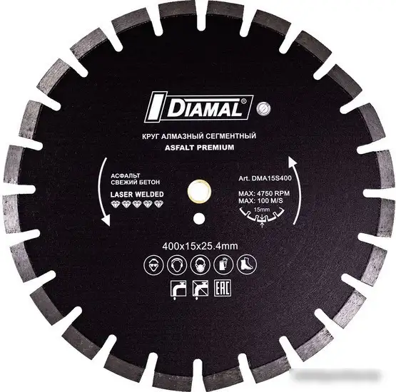 асфальт/асфальтобетон/бетон, 1 в наборе, 4750 об/мин, сухая/мокрая резка, 400 мм, посадочный диаметр 25.4 мм