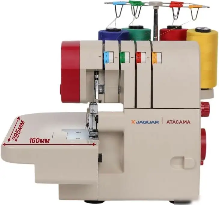 Оверлок Jaguar Atacama предназначен для домашнего использования и помогает быстро и легко создавать красивые швы. Он оснащён четырьмя нитями с шириной строчки до 8 мм и длиной стежка до 4 мм, что обеспечивает прочное и аккуратное соединение ткани. Модель работает на скорости до 1300 об/мин, что позволяет ускорить процесс шитья. Регулируемый давление лапки и высота подъема позволяют работать с различными материалами. Оверлок снабжён ножом с отключением для более точной обработки швов. Благодаря ускоренной заправке нитей и ручному натяжению, настройка происходит быстро и просто. В комплект входят все необходимые инструменты и запасные части, а также мягкий чехол для хранения. Оборудование удобно и компактно — вес всего 8,5 кг. Оно идеально подходит для тех, кто ценит качество и комфорт при швейных работах.