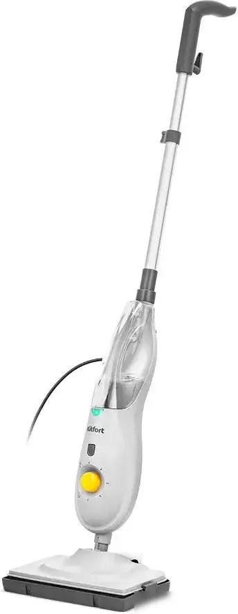 Паровая швабра Kitfort KT-3933 отлично подходит для бытового использования. Она работает от электросети с мощностью 1250 Вт и быстро нагревается — всего за 0,5 минуты. Устройство обеспечивает хорошую производительность по пару — до 32 г/мин — что помогает эффективно очистить полы. Встроенный регулятор расхода пара позволяет настроить поток в зависимости от типа поверхности. Емкость резервуара для воды составляет 0,5 литра, достаточно для нечастых уборок без постоянной дозаправки. В комплект входит насадка для ковров, которая помогает убрать грязь и шерсть с ковровых покрытий. Шнур длиной 5 метров дает свободу движения по комнате. Легкий вес — всего 2,1 кг, делает швабру удобной в использовании. Ручка цельная обеспечивает хороший захват, а компактные размеры позволяют легко хранить устройство.
