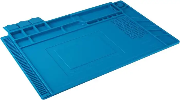 Этот коврик для пайки Deko SI28 065-0418 создан для удобства и безопасности работы. Он имеет размеры 45x30 см и толщину 0,4 см, что обеспечивает достаточно рабочей площади и устойчивость. Легкий вес — всего 0,31 кг — облегчает его перенос и использование в любой точке мастерской. Коврик предотвращает повреждение поверхности от нагрева и случайных капель припоя. Он легко очищается и сохраняет свои свойства длительное время. Исключает риск повреждения поверхности стола во время пайки. Обеспечивает комфортную работу и безопасность. Его компактные размеры позволяют удобно размещать его рядом с рабочим местом. Этот коврик подходит для профессиональных и домашних мастеров, кто ценит качество и удобство.