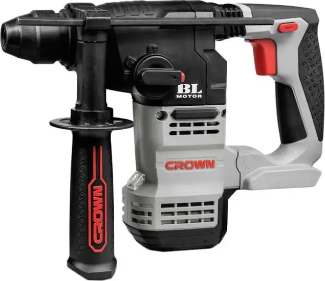 Перфоратор Crown CT28001HX отлично справляется с разными задачами благодаря трем основным режимам работы: сверлению, сверлению с ударом и долблению. Он оснащён мощным бесщеточным двигателем, который обеспечивает стабильную работу и долгий срок службы. Патрон SDS-plus позволяет легко менять инструменты и быстро приступать к работе. Скорость вращения до 1400 об/мин и энергия удара 2.3 Дж помогают быстро выполнять сверление в бетоне, металле и дереве. Ограничитель глубины сверления помогает делать отверстия точно нужной глубины. Реверс и противовибрационная защита повышают комфорт и безопасность, а дополнительная рукоятка улучшает контроль за инструментом. Перфоратор работает от аккумулятора Li-ion 20 В, его вес составляет всего 2,42 кг, что делает его удобным для длительной работы. В комплект входит ограничитель глубины, дополнительная рукоятка, инструкция и коробка. Этот инструмент идеально подходит для бытового и профессионального использования.