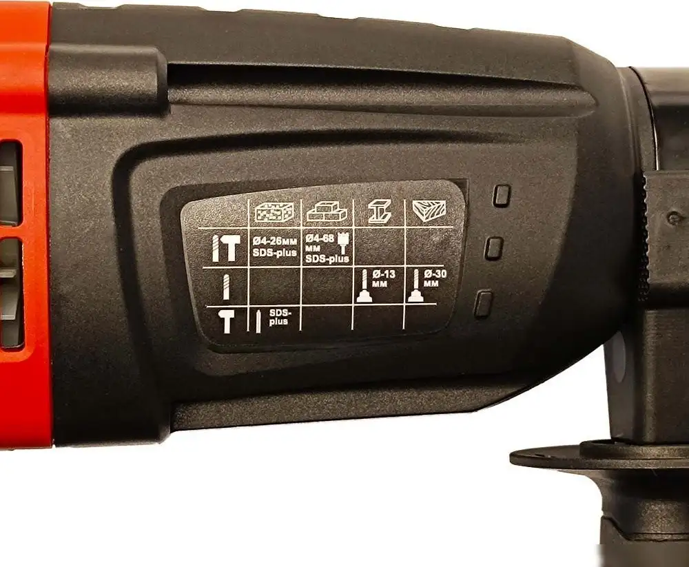 - Патрон SDS-plus — быстрое и удобное смена сверл, экономия времени.