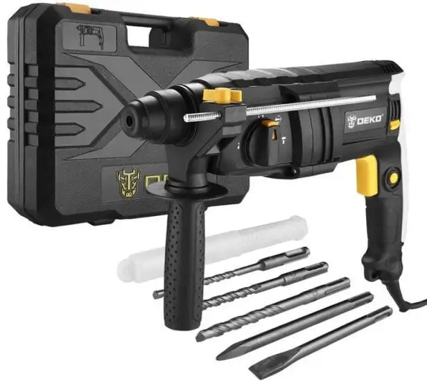 Перфоратор Deko DKH850W — это удобный инструмент для работы дома и в мастерской. Он подходит для сверления в бетоне, металле и дереве, а его мощность 850 Вт обеспечивает эффективную работу. Устройство имеет три режима: сверление, сверление с ударом и долбление, что делает его универсальным. Патрон SDS-plus легко меняется, а дополнительные аксессуары, такие как сверла и зубило, расширяют возможности использования. В комплекте есть дополнительные предметы, чтобы сразу начать работу. Благодаря ограничителю глубины и предохранительной муфте, работать с инструментом безопаснее. Этот перфоратор — хороший выбор для тех, кому нужен надежный и многофункциональный инструмент.