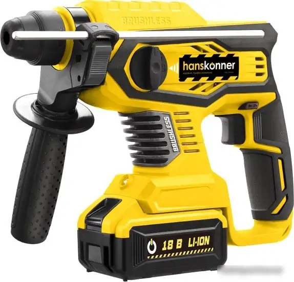 Перфоратор Hanskonner HRH1824BL — это мощный инструмент для работы с деревом, металлом и бетоном. Он имеет три режима работы: сверление, сверление с ударом и долбление, что делает его универсальным помощником на стройке или в мастерской. В перфораторе есть бесщеточный двигатель и подсветка, что обеспечивает долгий срок службы и удобство работы в темных местах. Он работает с патроном SDS-plus и способен сверлить бетон диаметром до 24 мм. Также в комплект входит дополнительная рукоятка, ограничитель глубины сверления, а также три сверла и зубило.