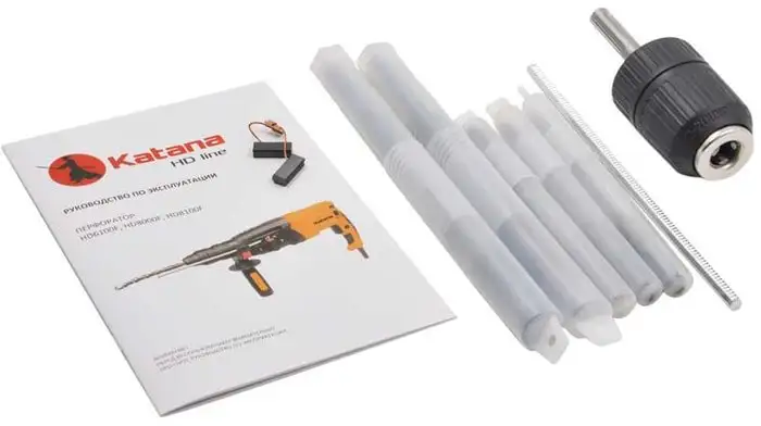 - Комплектация с дополнительными сверлами и зубилами: расширяет возможности использования инструмента.