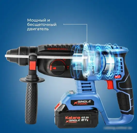 Перфоратор Katana RH5500 (без АКБ) идеально подходит для дома и строительных работ. Он имеет три режима работы: сверление, сверление с ударом и долбление, что облегчает выполнение разных задач. Максимальный диаметр сверления в бетоне — 26 мм, а в металле — 13 мм, что позволяет справляться с бетонными стенами и металлическими поверхностями. Оснащён бесщеточным двигателем, который делает работу более стабильной и долговечной. У перфоратора есть реверс и ограничитель глубины сверления, что помогает управлять процессом. В комплекте идут три сверла по бетону и кейс для хранения и транспортировки. Этот инструмент работает от двух аккумуляторов по 21 В и 4 Ач, что обеспечивает хорошую автономность. Он достаточно тяжелый — 3200 г, что стоит учитывать при длительном использовании.