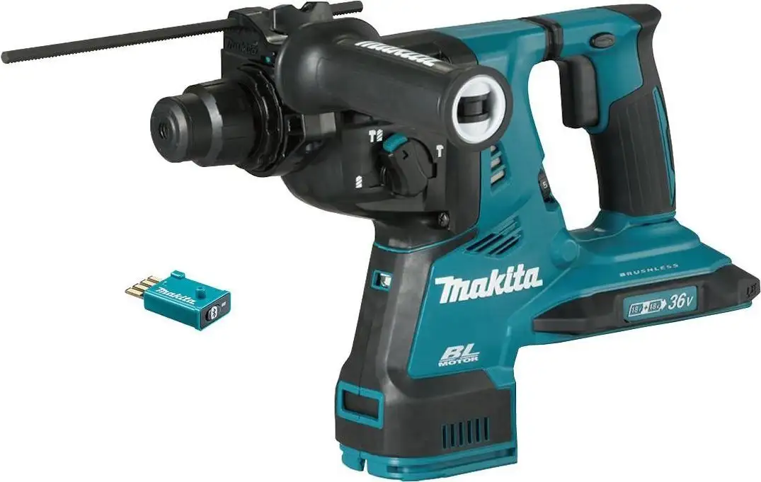Перфоратор Makita DHR282ZJU — мощное устройство, которое выполняет три режима работы: сверление, сверление с ударом и долбление. Он оснащён патроном SDS-plus и максимальной скоростью вращения 980 об/мин, что позволяет быстро справляться с задачами. Устройство имеет ударную энергию 2.8 Дж и способен сверлить бетон до 28 мм, металл — до 13 мм, и дерево — до 32 мм. Бесщеточный двигатель повышает эффективность и долгий срок службы инструмента, а реверс помогает в работе и устранении зажатий. Встроенная противовибрационная защита уменьшает усталость во время работы. Ограничитель глубины и подсветка делают работу точнее и удобнее. Комплектация включает кейс, а в комплект не входит аккумулятор и зарядное устройство, что позволяет выбрать подходящие аккумуляторы самостоятельно. Вес устройства около 3,7 кг, что обеспечивает хорошую балансировку и комфорт при работе.