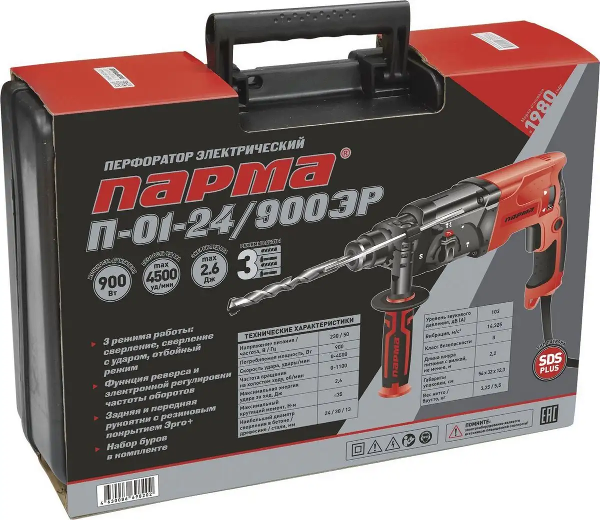 Перфоратор Парма П-01-24/900ЭР (кейс)