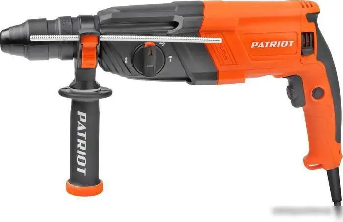 Перфоратор Patriot RH 243Q предназначен для работы с бетоном, металлом и деревом благодаря мощному двигателю в 770 Вт и патрону SDS-plus. Он легко справится с сверлением отверстий в бетоне до 30 мм, в металле — до 24 мм и в дереве — до 13 мм. В устройстве реализованы три режима работы: сверление, сверление с ударом и долбление, что расширяет возможности использования. Максимальная скорость вращения достигает 1350 об/мин, а энергия удара — 2.6 Дж. На корпусе есть функция ограничения глубины сверления и фиксация кнопки включения для удобства работы длительное время. Проще управлять инструментом помогают рукоятка и предохранительная муфта, защищающая от поломок при застревании сверла. В комплект входит кейс, быстрозажимной патрон и дополнительная рукоятка, что облегчает транспортировку и работу. Этот перфоратор отлично подходит для домашнего и профессионального использования благодаря высокой мощности и надежной конструкции.