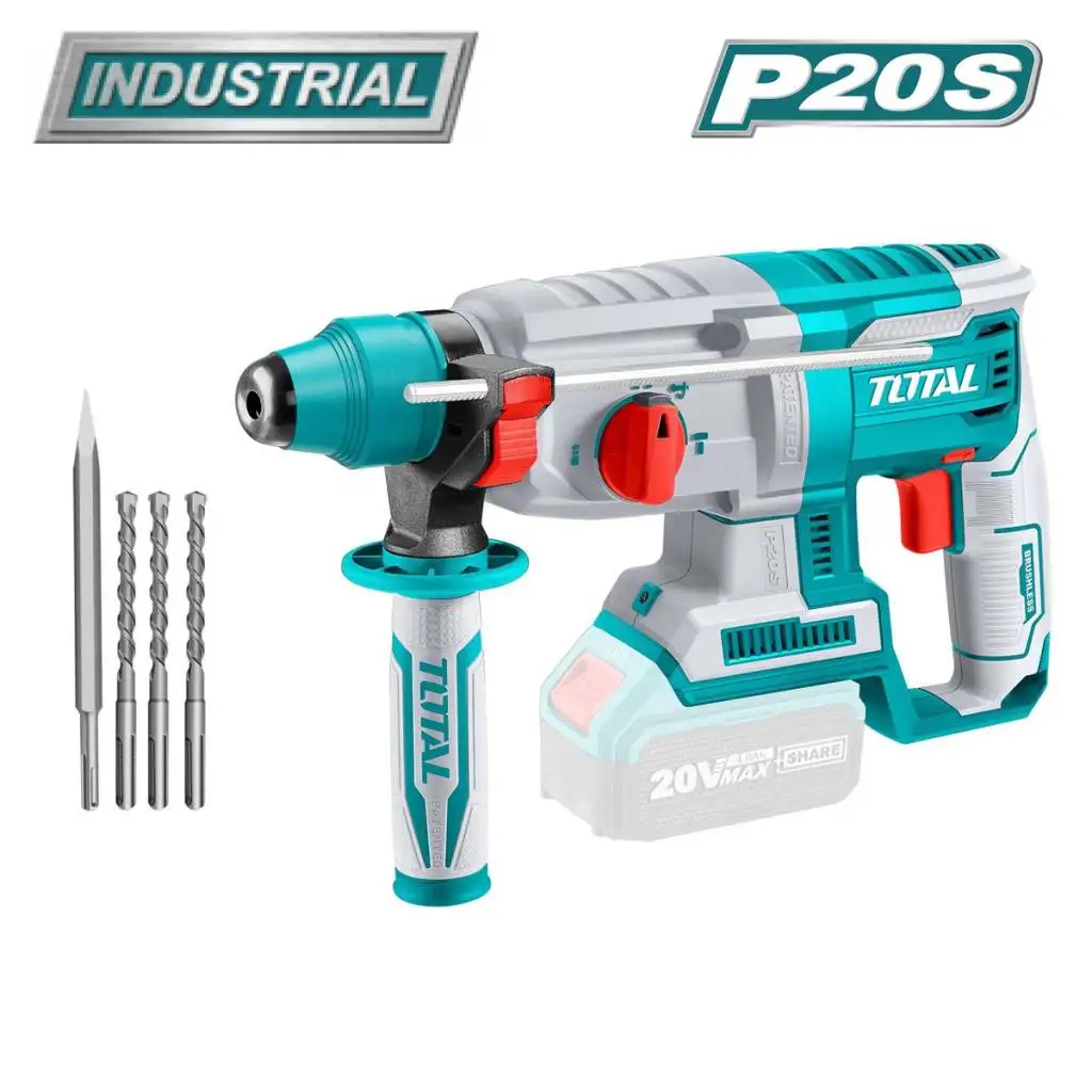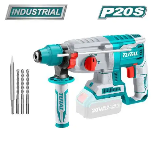 Перфоратор Total TRHLI20228 — это инструмент для работы с бетоном, деревом и металлом. Он имеет три режима работы: сверление, сверление с ударом и долбление, что делает его универсальным. Максимальная скорость вращения достигает 5000 об/мин, а энергия удара — 2 Дж, что помогает выполнять задачи быстро и эффективно. В перфораторе есть бесщеточный двигатель и реверс, что увеличивает его срок службы и удобство использования. Оснащен ограничителем глубины сверления и подсветкой для точной работы в темных местах. В комплект входят три сверла по бетону, а также долото и удобная рукоятка для стабильной работы. Он работает от аккумулятора 20 В, но комплект с аккумулятором и кейсом не входит.