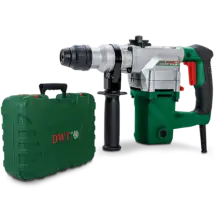 Перфоратор DWT BH09-26 BMC мощностью 950 Вт подходит для различных задач, таких как сверление, сверление с ударом и долбление. Он оснащён патроном SDS-plus, что облегчает замену принадлежностей, а его скорость вращения составляет 850 об/мин. Максимальный диаметр сверления в бетоне — 26 мм, в металле — 13 мм, а в дереве — 40 мм. В оки есть дополнительная рукоятка и ограничитель глубины, что помогает безопасно и точно работать. Также есть пылесборник для уменьшения пыли и контейнер со смазкой. Комплектация включает множество принадлежностей, таких как буры, бита и долото, а также удобный пластиковый кейс для хранения и переноски. Этот инструмент легко использовать для ремонта и строительных работ дома или на стройке.