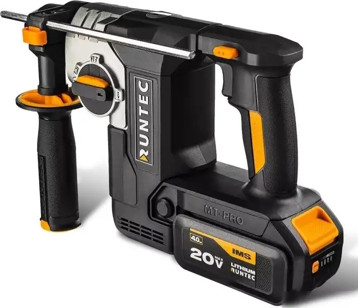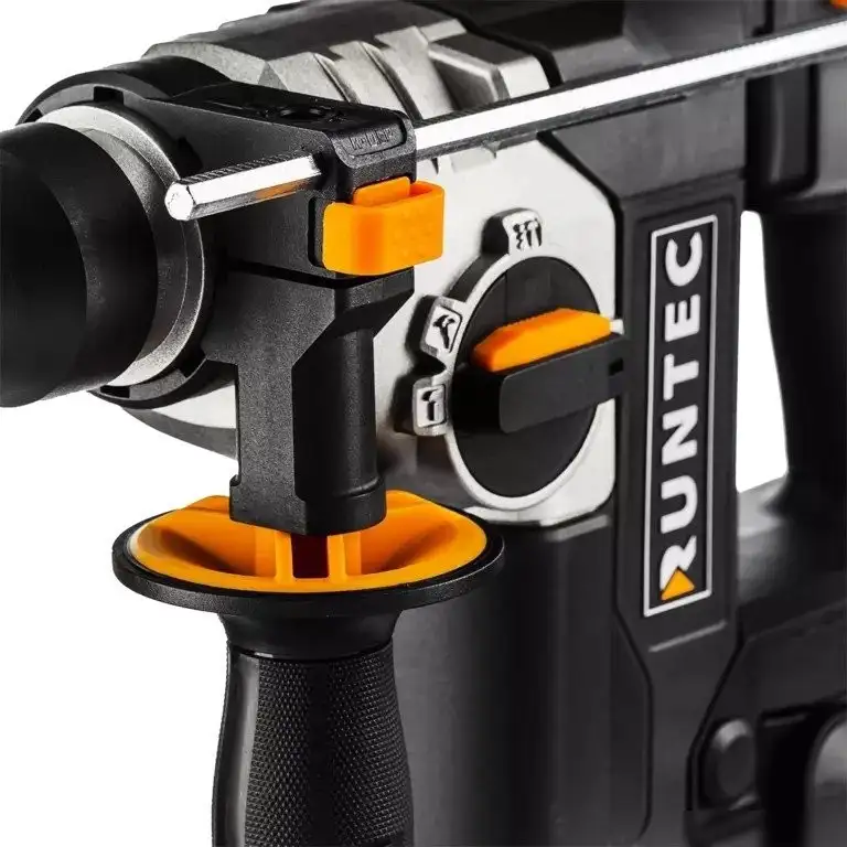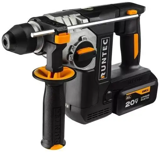 Перфоратор Runtec RT-EH750 — это мощное устройство для сверления, сверления с ударом и долбления. Он работает на двух аккумуляторах 20V с емкостью 4 Ач, что обеспечивает долгую работу без подзарядки. В устройство встроен бесщеточный мотор, который повышает эффективность и долговечность работы. Перфоратор оснащён патроном SDS-plus, что позволяет быстро менять оснастку. Максимальная скорость вращения достигает 1550 об/мин, а частота ударов — 4800 в минуту, что помогает быстро справляться с задачами. Энергия удара составляет 2,3 Дж, что делает инструмент подходящим для работы с бетоном до 24 мм в диаметр. Дополнительные функции включают индикатор уровня заряда и ограничитель глубины сверления для точности. В комплект входит сумка, две батареи, зарядное устройство и боковая рукоятка, что делает транспортировку и использование удобным.