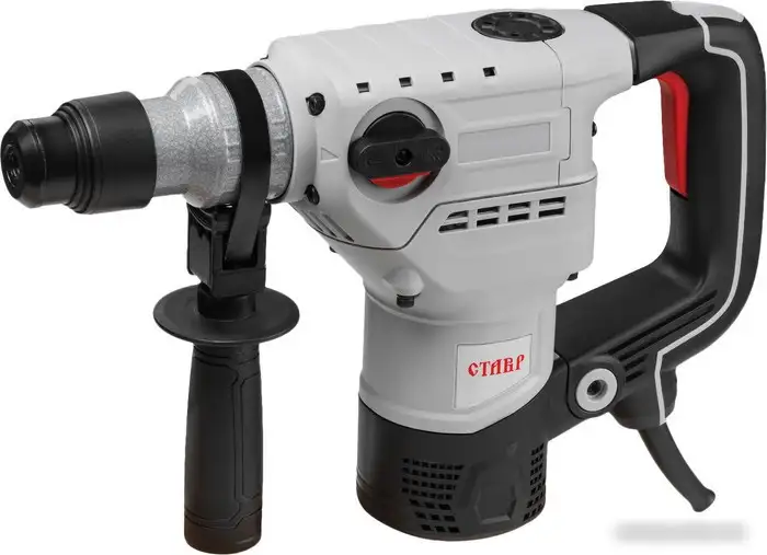Перфоратор Ставр ПЭВ-1100 мощностью 1100 Вт отлично подходит для сверления, сверления с ударом и долбления в бетоне. Его патрон SDS-plus позволяет легко менять сверла, а максимальный диаметр сверления в бетоне достигает 32 мм. Устройство имеет длинный шнур длиной 3 метра, что дает свободное движение во время работы. Бесщеточный мотор отсутствует, но есть ряд полезных функций, таких как противовибрационная защита и ограничитель глубины сверления. Он комплектуется прочным кейсом, разнообразными сверлами и ударными насадками для удобства. Этот перфоратор — надежный помощник с хорошим балансом функциональности и удобства использования.
