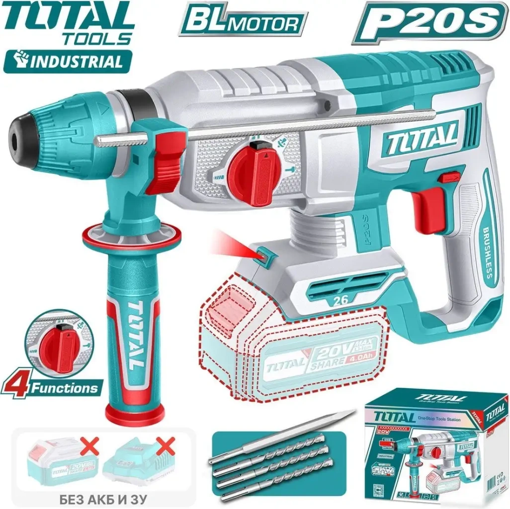 | Информация | Аккумуляторный перфоратор 20 В с бесщеточным двигателем и энергией удара 2.5 Дж предназначен для сверления и долбления бетона, кирпича и других твердых материалов. Оснащен патроном SDS Plus, подсветкой рабочей зоны и поставляется с базовым набором оснастки. Оптимален для строительных и монтажных работ. |