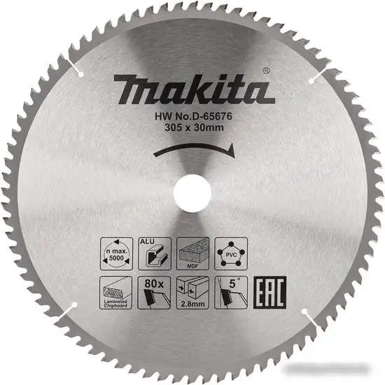 1 шт, алюминий/дерево/ламинат/пластик, 80 зубьев/сегментов, диаметр 305 мм, посадочный диаметр 30 мм, рез 2.8 мм