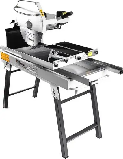 Электрический плиткорез Helmut ST400-900N — это устройство, предназначенное для точного и быстрого резания керамической плитки. Он работает на электродвигателе мощностью 2200 Вт и может выполнять как прямой, так и диагональный рез с максимальной глубиной 125 мм и длиной до 900 мм. Плиткорез оснащен диском диаметром 400 мм, который обеспечивает чистый и аккуратный срез. Благодаря водяному охлаждению и верхнему расположению двигателя, он работает надежно и долго. Устройство также включает угловой упор, водяной насос и подкатной стол для удобства работы. Этот плиткорез подходит для профессиональной и регулярной использования в ремонте или строительстве.