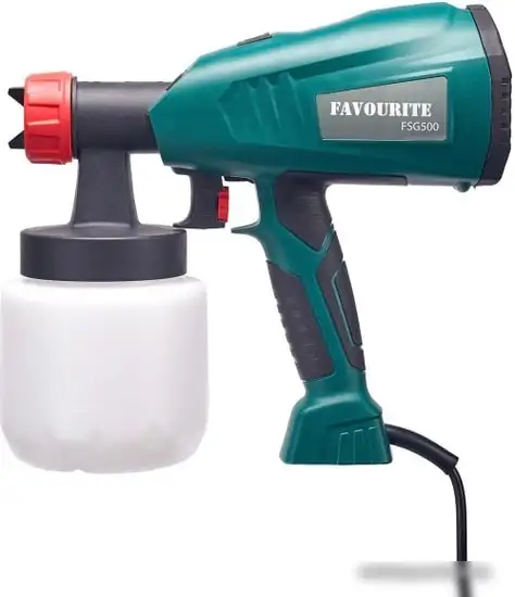 Краскораспылитель Favourite FSG500 оснащён мощным двигателем мощностью 500 Вт, что позволяет эффективно распылять краску. Он имеет производительность 800 мл в минуту, что помогает быстро завершить работу. В комплект входят два сопла диаметром 1,8 мм и 2,6 мм, что удобно для разных типов покрытий. Емкость бачка составляет 800 мл, её достаточно для больших объёмов работы. Встроенный насос обеспечивает стабильное давление и равномерное распыление краски. Максимальная вязкость краски достигает 60 DIN, что позволяет использовать разные виды материалов. Благодаря простому управлению и хорошей производительности, этот распылитель подходит для домашних и профессиональных задач.