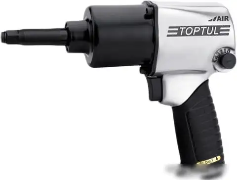Пневматический гайковерт Toptul KAAB1640 — это удобный инструмент для затяжки болтов и гаек. Он обладает ударной функцией, что помогает быстро и легко выполнить работу даже с зажатыми соединениями. Максимальный момент затяжки достигает 542 Нм, что обеспечивает надежное закрепление. Скорость вращения на холостом ходу составляет 8 000 об/мин, что ускоряет выполнение задач. Расход воздуха при работе — 113 л/мин, а рабочее давление — 6.2 бар, что важно для правильной работы. Размер хвостовика — 1/2" подходит для большинства стандартных головок. В комплекте инструмент идёт без кейса и дополнительных принадлежностей, его длина — 242 мм, а вес — 2730 г, что делает его удобным и легким в использовании.