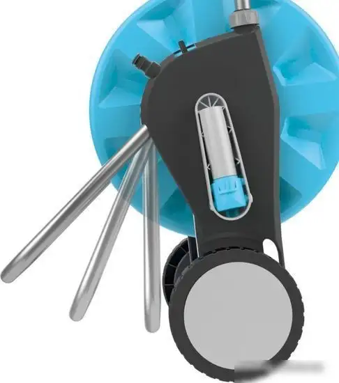 Тележка для шланга Cellfast Compact 55-300 выполнена в голубом и черном цвете, что делает её красивой и практичной. Она предназначена для удобного хранения и транспортировки шланга, позволяя соблюдать порядок и избегать запутывания. Модель не включает распылитель и соединительные элементы, что подходит для тех, кто хочет использовать свою собственную систему. Благодаря компактному размеру тележка легко помещается в гараже или сарае. Она проста в использовании и помогает экономить время при работе с садовым шлангом.
