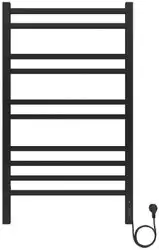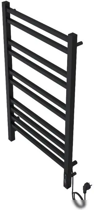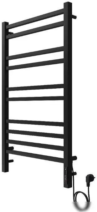 Полотенцесушитель Aquatek Альтаир П10 — это электрический прибор с формой "лесенка", выполненный из нержавеющей стали в черном муаре. Он оснащён 10 ребрами, что позволяет быстро и эффективно согревать полотенца и воду в ванной. Его длина составляет 90 см, ширина — 53 см, а глубина — 9 см, что подходит для большинства ванных комнат. Устройство управляется с помощью встроенного таймера и терморегулятора, что помогает точно настроить нагрев и повысить комфорт. В комплект входят крепления, ключ-шестигранник, переходники и кабель для подключения. Рабочее давление до 9 атм делает его надёжным и долговечным в эксплуатации. Этот полотенцесушитель обладает низким энергопотреблением — всего 150 Вт, что экономит электроэнергию.