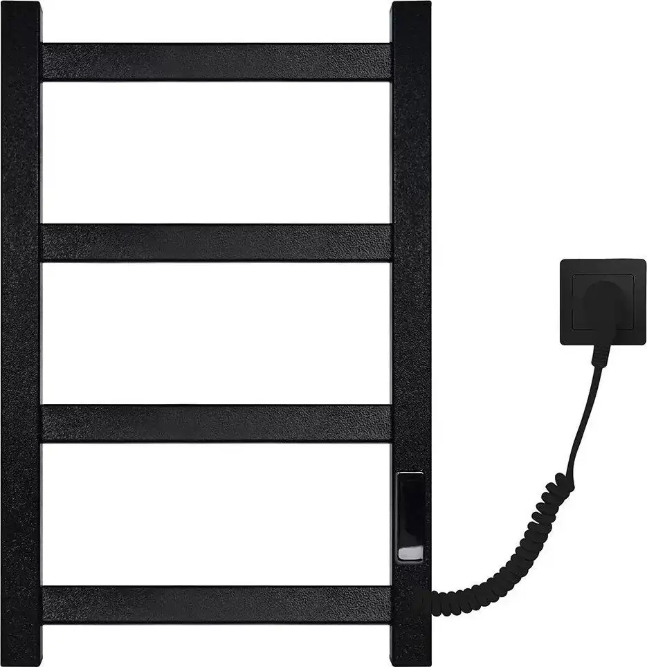 электрический, "лесенка", нержавеющая сталь, подключение нижнее, таймер, терморегулятор, 50x30 см, цвет: черный