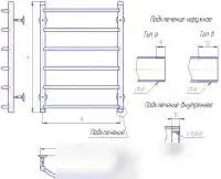 водяной, "лесенка", нержавеющая сталь, подключение нижнее (500 мм, 1"), 60x50 см, цвет: полированная сталь