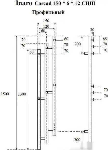 Полотенцесушитель Маргроид Ferrum Inaro 3 Cascade СНШ профильный 150*6*12 Графит, скрытого монтажа, таймер справа