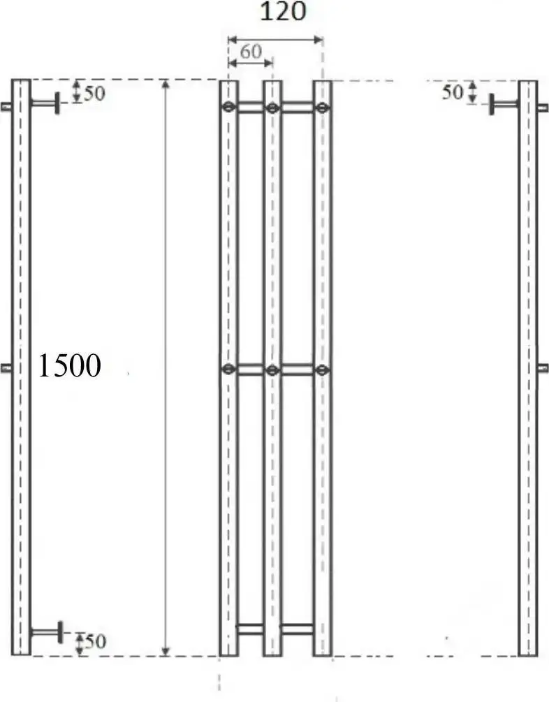 водяной, вертикальный, нержавеющая сталь, подключение нижнее (120 мм, 1/2"), 150x12 см, цвет: хром