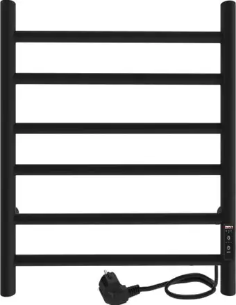 электрический, "лесенка", нержавеющая сталь, подключение боковое, таймер, терморегулятор, цвет: черный
