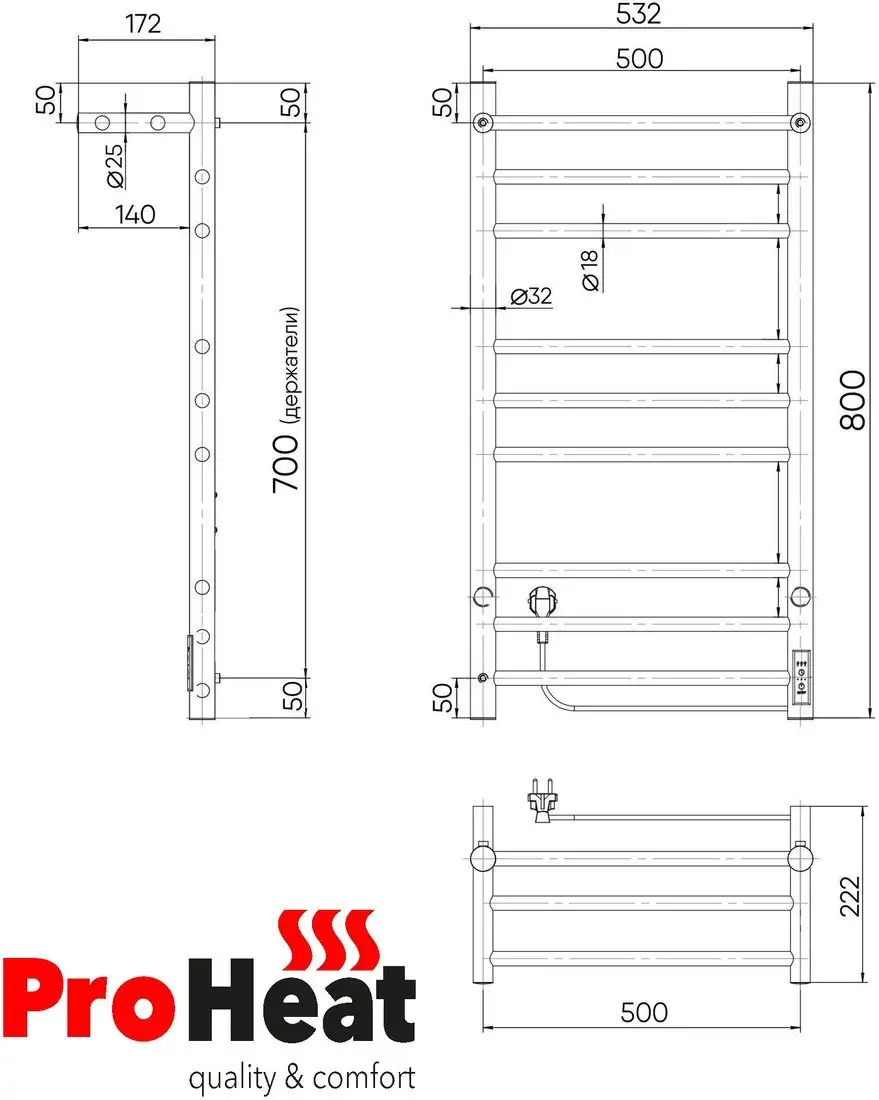 Полотенцесушитель ProHeat Line 50х80 (полка, терморегулятор, таймер)