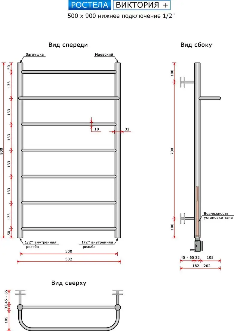 Полотенцесушитель Ростела Виктория+ 50x90/7 (1/2")
