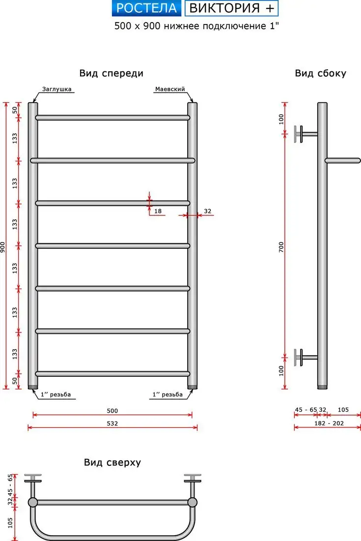 Полотенцесушитель Ростела Виктория + 50x90/7 (1")
