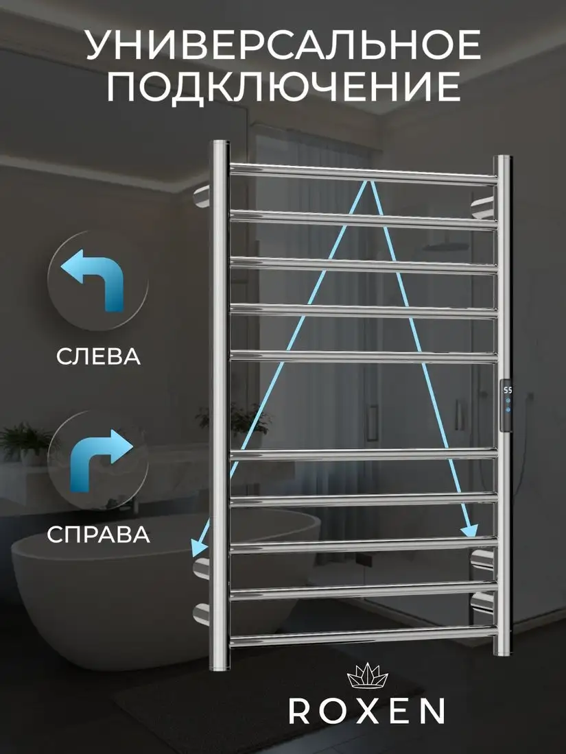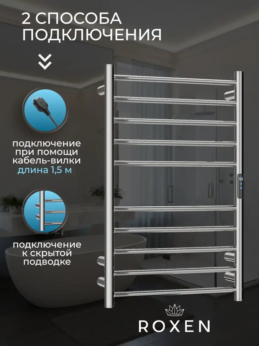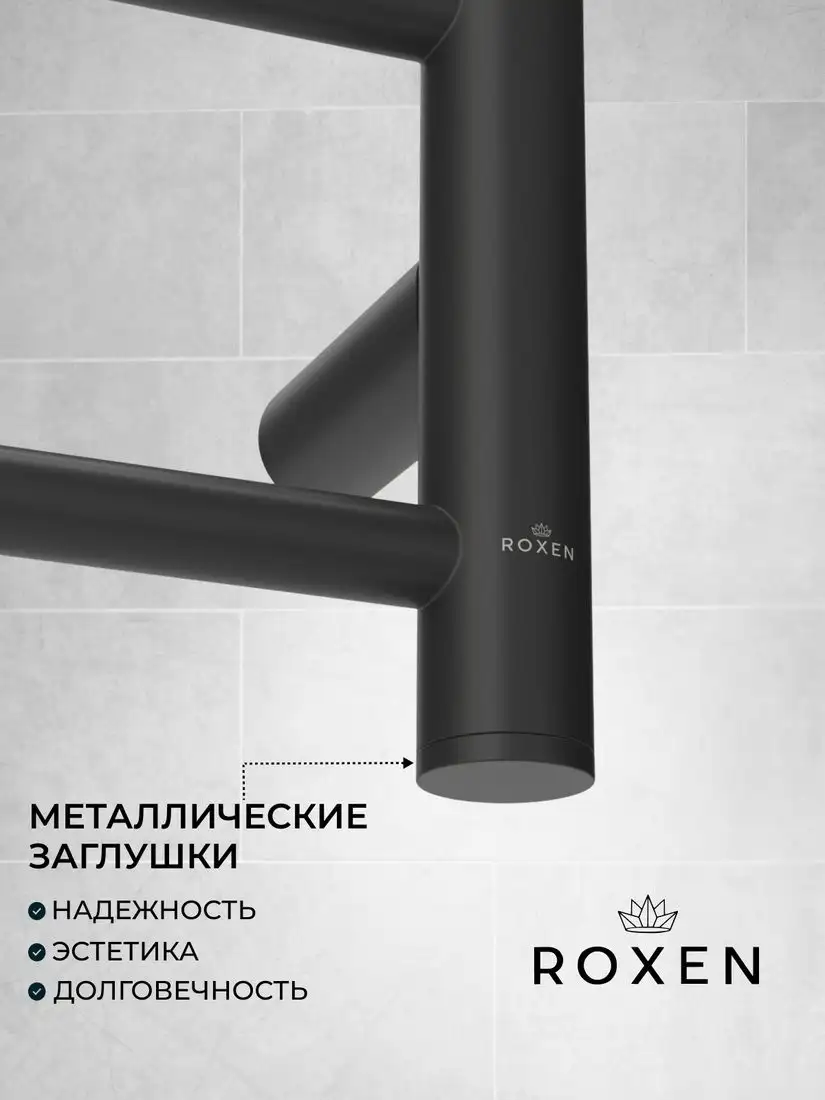 Полотенцесушитель Roxen Caspia 11070-5063B — это электрическое устройство в форме "лесенки" с шестью ребрами, выполненное из нержавеющей стали. Оно подключается сбоку и окрашено в черный цвет, что отлично впишется в современный интерьер. Размеры устройства: длина 63 см, ширина 50 см, глубина 11 см, вес 4,08 кг. Коллектор диаметром 32 мм и толщиной 2 мм обеспечивает надежную работу и долговечность. Полотенцесушитель оснащен таймером и терморегулятором, позволяющими легко управлять температурой и временем работы. Посадочное расстояние между ребрами составляет 468 мм, а мощность — 66 Вт, что обеспечивает быстрый нагрев и энергосбережение. Скрытое подключение делает внешний вид более аккуратным. В комплект входит паспорт, крепления, гарантийный талон, модуль скрытого подключения и кабель. Это устройство прослужит вам не менее 10 лет без потери качества и функциональности.