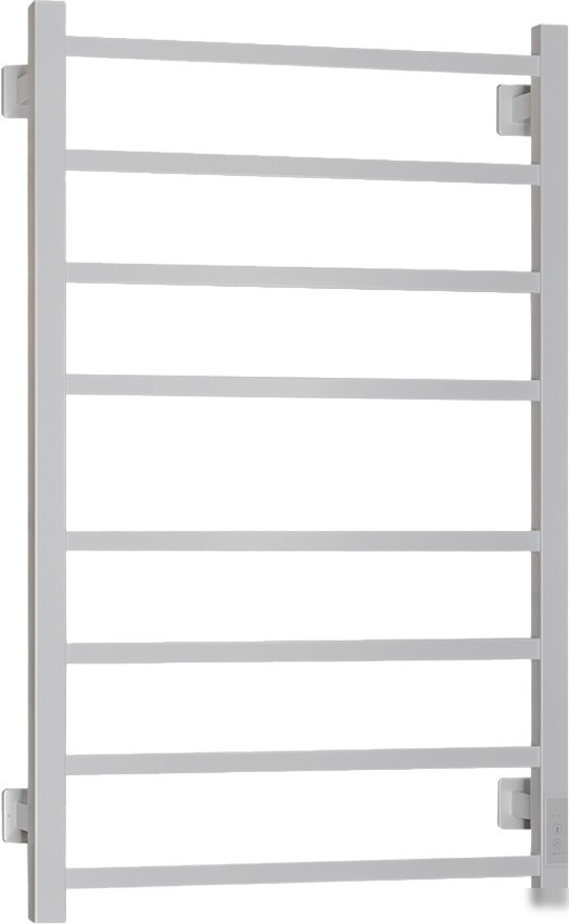 Полотенцесушитель Roxen Square BK-109SW-8T — это электрическая модель в форме "лесенка" с 8 ребрами, выполненная из углеродистой стали. Он имеет белый цвет и длину 85 см, что делает его удобным для установки в любой ванной комнате. В полотенцесушителе есть светодиодная индикация, которая показывает работу устройства, а также таймер на 2 или 4 часа для автоматического отключения. Он потребляет всего 80 Вт, что обеспечивает энергоэкономичную работу. Управление осуществляется с помощью кнопок, а сетевой шнур длиной 1 метр. Этот прибор не оснащён функциями "умного дома" или терморегулятором, однако обладает гарантийным сроком службы до 10 лет.