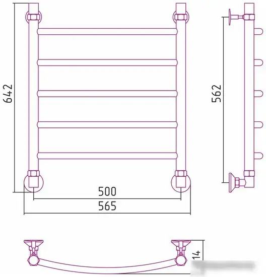 водяной, "лесенка", нержавеющая сталь, подключение нижнее/диагональное/боковое, 64.2x56.5 см, цвет: хром