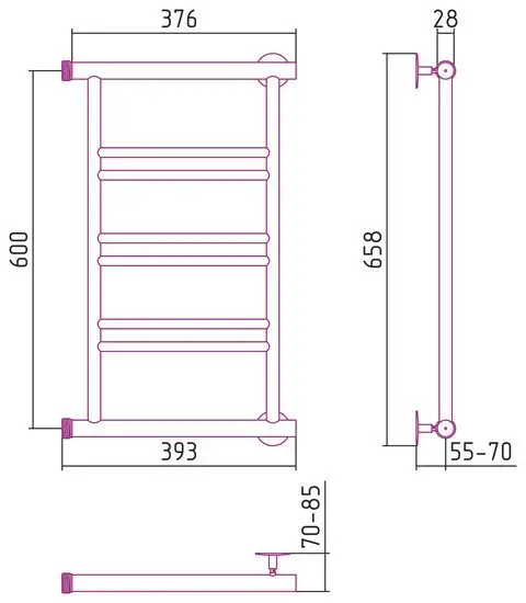 Полотенцесушитель Стилье Минор 0601 – это надежное устройство из нержавеющей стали в виде лестницы, которое предназначено для подогрева полотенец и влажных помещений. Его боковое подключение и хромированный цвет отлично сочетаются с любой ванной комнатой. Размеры модели: длина 65,8 см и ширина 39,3 см, что делает её компактной и удобной для установки. Теплоотдача составляет 239 Вт, что помогает быстро нагреть воздух и полотенца. Устройство удобно в использовании и долговечно благодаря 5-летней гарантии. В комплект входит все необходимое: полотенцесушитель, телескопические кронштейны, воздушные клапаны и паспорт. Технические характеристики позволяют легко подключить его через два соединительных элемента.