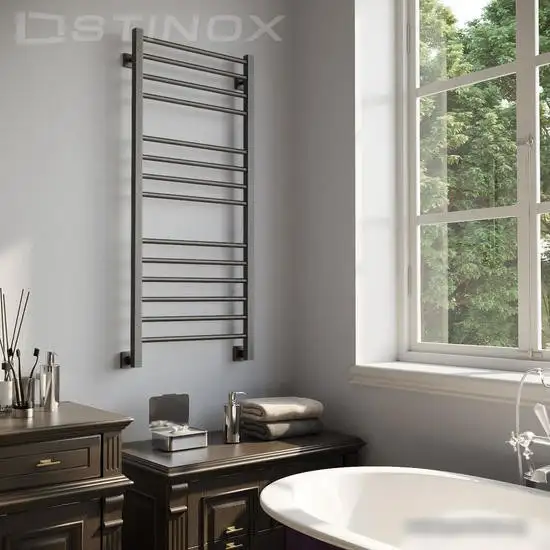 Полотенцесушитель Stinox Classic Luxe 50x120 выполнен из нержавеющей стали и имеет классический дизайн "лесенка". Он оснащён 14 ребрами, которые быстро и равномерно нагревают полотенца и ванную комнату. Благодаря телескопическому креплению легко устанавливается на любую стену. Устройство выдерживает рабочее давление до 15 атм и опрессовочное — до 25 атм, что обеспечивает долговечность и безопасность. Теплоотдача составляет 685 Вт, этого достаточно для прогрева комнаты. Черный цвет и стильный внешний вид подчеркнут интерьер ванной. В комплект входит комплект для установки, а также технический паспорт для обслуживания. Вес полотенцесушителя — 11,3 кг, размеры — 120х50 см, что подходит для различных размеров ванных комнат.