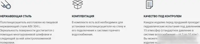 - Высокое теплоотдача — быстро сохнет полотенца и обогревает комнату.