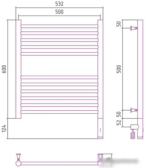 Полотенцесушитель Сунержа Богема 3.0 прямая 600х500 МЭМ правый 31-5805-6050