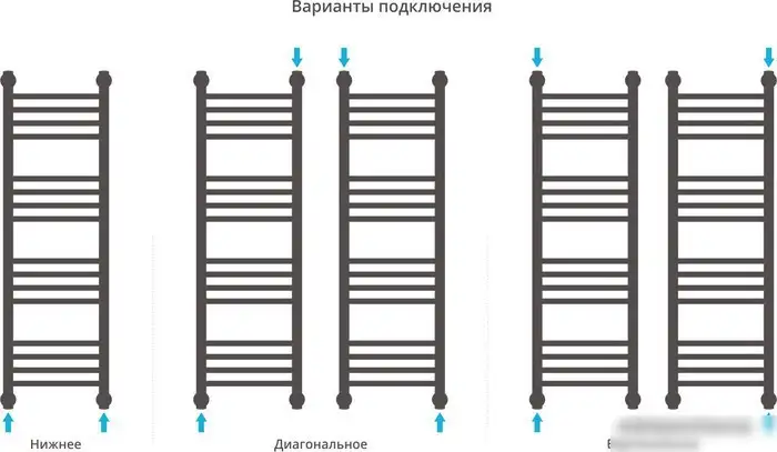 водяной, "лесенка", нержавеющая сталь, подключение нижнее/диагональное, 106.2x35 см, цвет: полированная сталь