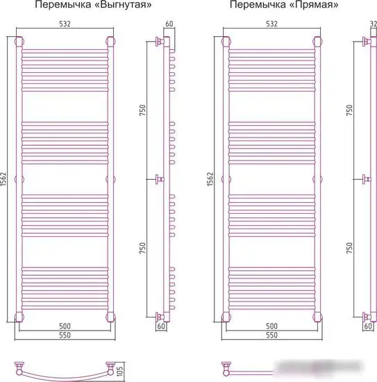 водяной, "лесенка", нержавеющая сталь, подключение нижнее/диагональное, 156.2x55 см, цвет: полированная сталь