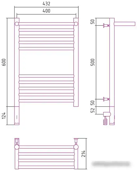 электрический, "лесенка", нержавеющая сталь, 72.4x43.2 см, цвет: черный