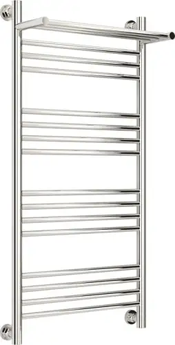 Полотенцесушитель Сунержа Богема изготовлен из нержавеющей стали, что обеспечивает долговечность и стабильность использования на протяжении 10 лет. Он имеет форму "лесенка", хорошо подходит для сушки полотенец и увеличивает комфорт в ванной. В комплекте есть полка, которая отлично пригодится для хранения мелочей или полотенец. Подключение возможно как нижнее, так и верхнее или диагональное, что облегчает установку. Размеры устройства — 106,2 см в длину, 55 см в ширину и 21,3 см в глубину, он весит всего 6 кг. Теплоотдача составляет 583 Вт, что позволяет быстро нагревать помещение.