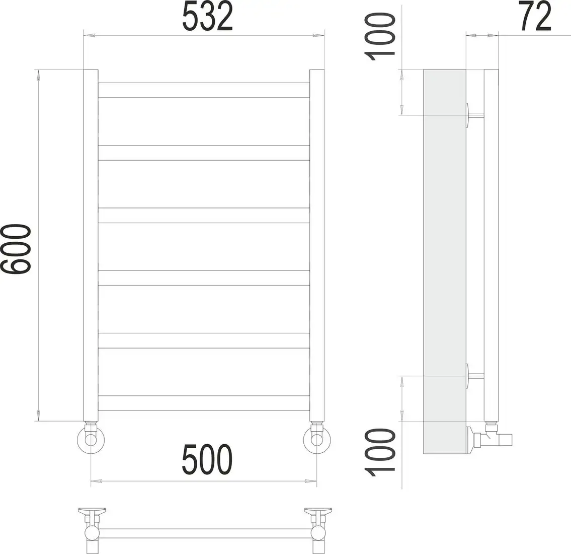 Полотенцесушитель TERMINUS Аврора П6 изготовлен из нержавеющей стали, что обеспечивает его долговечность и устойчивость к коррозии. Он выполнен в стиле «лесенка», что удобно для размещения полотенец и легкого доступа. Размеры устройства — 500×600 мм, ширина составляет 53,2 см, а глубина — 7,2 см. Он подключается снизу, а диаметр коллектора — 32 мм, что облегчает монтаж. Благодаря рабочему давлению 15 атмосфер, полотенцесушитель выдерживает высокие нагрузки, и опрессовочное давление 20 атмосфер гарантирует его надежность. Он легко подключается и оснащен всеми необходимыми комплектующими: заглушкой, краном Маевского, телескопическим креплением и паспортом. Легкий вес — всего 2,5 кг, что упрощает установку и транспортировку. Модель отлично подходит для установки в ванных комнатах благодаря прочности и современному дизайну.