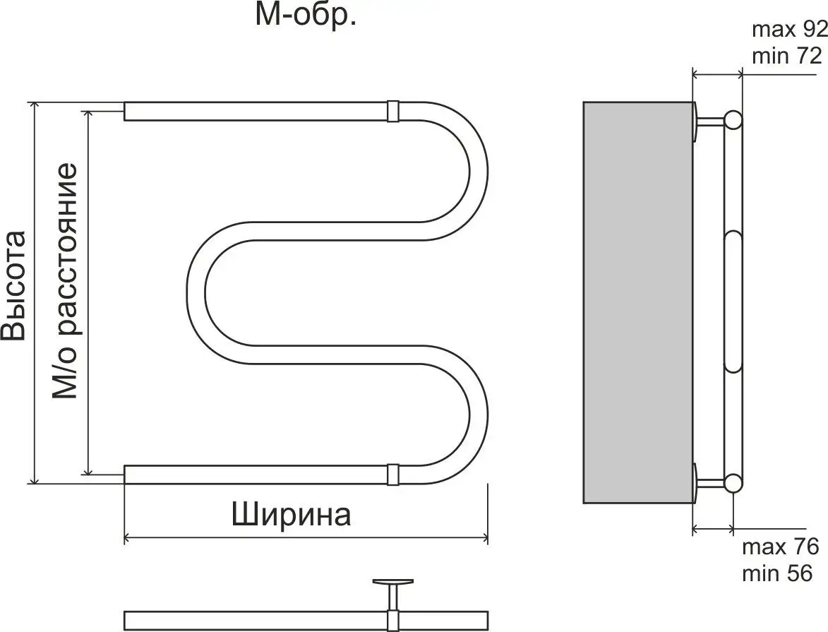 водяной, М-образный, нержавеющая сталь, подключение боковое, цвет: хром