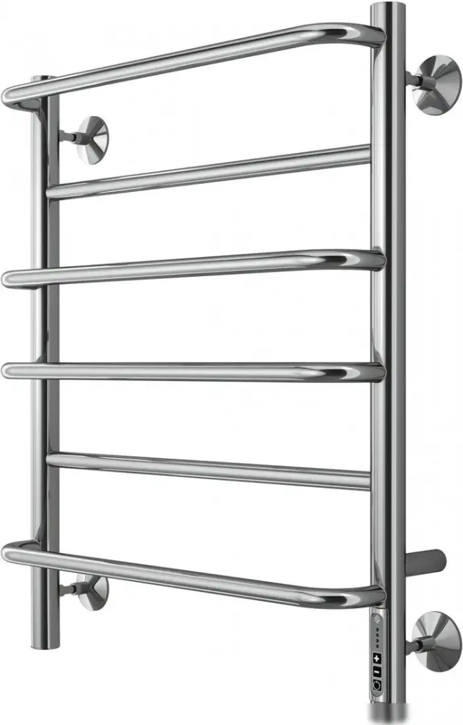 Полотенцесушитель TERMINUS Евромикс П6 имеет классическую форму в виде лесенки с шестью ребрами, выполненную из нержавеющей стали, что обеспечивает долговечность и стойкость к коррозии. Он подключается как боковым, так и нижним способом, скрытое подключение делает монтаж аккуратным. Размеры устройства: длина 65 см, ширина 53,2 см, глубина 13,9 см, что позволяет разместить его в различных ванных комнатах. Светодиодная индикация показывает работу устройства для удобства контроля. Терморегулятор позволяет точно управлять температурой, повышая комфорт и экономию энергии. Устройство подключается к электросети с помощью скрытого кабеля, что придает интерьеру аккуратный вид. Модель оснащена телескопическим креплением и модулем для скрытого подключения, облегчая монтаж. Теплоотдача составляет 140 Вт, что эффективно обеспечивает обогрев полотенец и воздуха в ванной. Максимальная мощность устройства равна 100 Вт, что позволяет быстро нагревать полотенца и сохранять тепло.