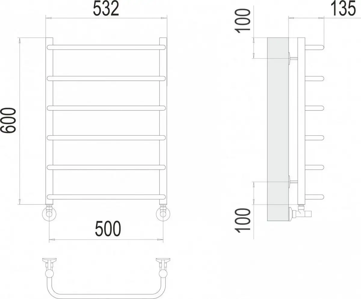 водяной, "лесенка", нержавеющая сталь, подключение боковое (500 мм, 1"), цвет: хром