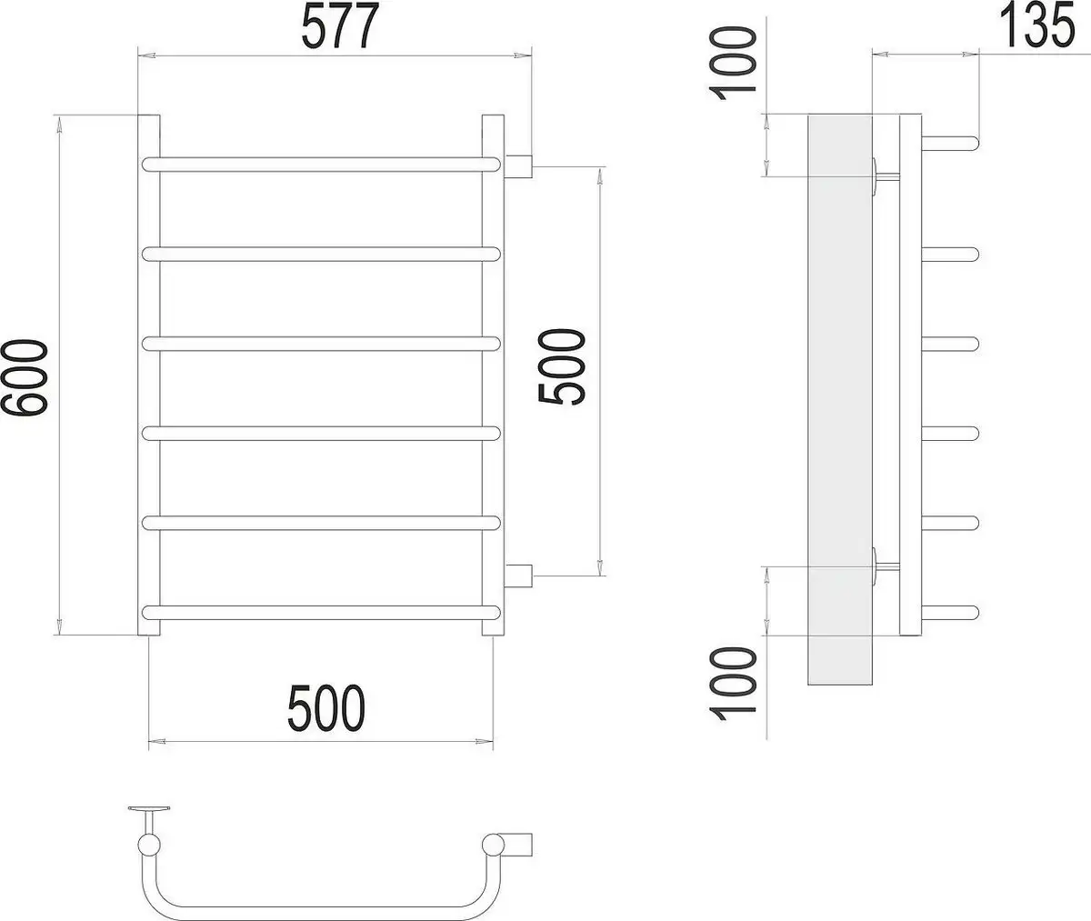 Полотенцесушитель TERMINUS Стандарт П6 500x600 (с боковым подключением 50, RAL 9005 матовый)